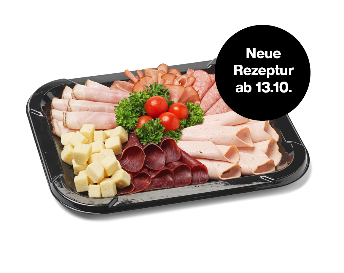 Zutaten: AdR Saftschinken mit Pfeffer: Schweinefleisch, Nitritpökelsalz: (Kochsalz, Konservierungsstoff: E 250), Gewürze, Würze, Pfeffer, Zucker, Glucosesirup, Antioxidationsmittel: Natriumascorbat und Natriumcitrate, Säuerungsmittel: Zitronensäure, Stabilisatoren: Diphosphate und Triphosphate, Aroma, AdR Rohespeck: Schweinefleisch, Kochsalz jodiert, Zucker, Traubenzucker, Maltodextrin, Gewürze, Konservierungsstoff: E 262, Antioxidationsmittel: E 301, Säuerungsmittel: Zitronensäure und E 331, Würze, AdR Appenzeller Käse (Schweizer Rohmilch Halbhartkäse, vollfett), AdR Tilsiter Käse (Schweizer Rohmilch Halbhartkäse, vollfett), AdR Rheintaler Bauernwurst: Rindfleisch, Schweinefleisch, Speck, Nitritpökelsalz (Kochsalz, Konservierungsstoff: E250), Gewürze, Zucker, Rapsöl, Geschmacksverstärker: Mononatriumglutamat, Stabilisatoren: E 450, E 452, Säuerungsmittel: E 575, Antioxidationsmittel: Ascorbinsäure, Zitronensäure, AdR Wyländer Rauchmöckli: Schweinefleisch, Kochsalz, Gewürze, Traubenzucker, Zucker, Geschmacksverstärker: Mononatriumglutamat, Antioxidationsmittel: E 301, Säuerungsmittel: E 331, Konservierungsstoff: E 252, AdR IGP Buendnerfleisch: Rindfleisch, Kochsalz, Gewürze, Gewürzextrakt, Glucose, Zucker, Konservierungsstoff: Kaliumnitrat, Antioxidationsmittel: Natriumascorbat und Natriumcitrate. aus der Region (CH), AdR Bündner Salsiz: Schweinefleisch, Rindfleisch, Speck, jodiertes Kochsalz, Gewürze, Streuwürze, Geschmacksverstärker: Mononatriumglutamat, Traubenzucker, Maltodextrin, Antioxidationsmittel: E 331, Konservierungsstoff: E 252, Lollo Salat grün. Kann Spuren von Gluten, Krebstiere, Eier, Fisch, Sojabohnen, Pistazien, Walnuss, Sellerie, Senf, Sulfite, Sesamsamen enthalten.